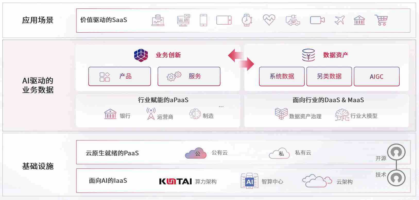 数字时代,,,围绕企业数字化转型的关键要素,,365钱包数码开创性的提出数云融合战略和技术体系框架,,,着力在云原生、、数字原生、、、AI原生和信创产业上架构产品和服务能力,,,为处在不同数字化转型阶段的快消零售、、、汽车、、金融、、医疗、、政企、、、、教育、、、运营商等行业客户提供泛在的敏捷IT能力和融合的数据驱动能力,,,构建跨界融合创新的数字业务场景和新业务模式,,,助力企业级客户建立面向未来的核心能力和竞争优势,,,,全面推动社会的数字化、、智能化转型升级。。。。